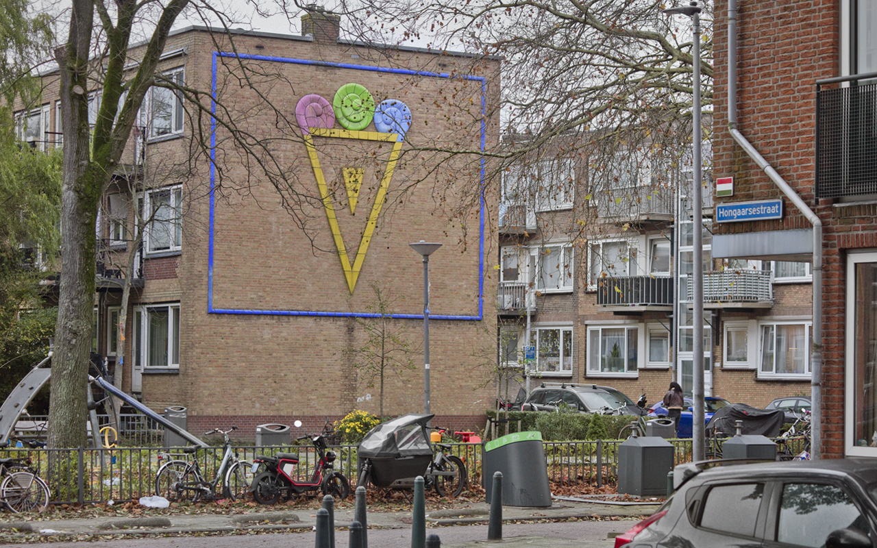 Deze keramische fauteuil met ronde armleuningen en een waaiervormige rugleuning is geplaatst op eigen initiatief van kunstenaar Dora Dolz. De sculptuur maakte in de zomer van 1986 deel uit van een beeldenroute, die georganiseerd was ter gelegenheid van het tienjarig bestaan van het Hulp- en Informatiecentrum (HIC) van de gemeente. De zevenhonderd kilo wegende stoel was geplaatst op de hoek van de Hoogstraat en de Mariniersweg voor de entree van de Centrale Bibliotheek. In het tweede weekend van juli werd de stoel vernield. De kapotte stoel werd opgeslagen in de kelder van de bibliotheek en de kunstenares was woedend over het vandalisme. Dolz kon de stukken van haar duizenden guldens kostende object bij elkaar komen rapen. “Wat de Duitsers niet hebben platgegooid, vernielen de Rotterdammers zelf wel”, zei de uit Barcelona afkomstige academie-docente daags na de vernieling tegen een verslaggever van Het Vrije Volk. Ze ging met een pot cement aan het werk in de parkeergarage om de brokstukken te lijmen. Vervolgens werd de stoel met een hijskraan naar haar huis aan de Heemraadssingel getransporteerd, waar de kunstenares hem demonstratief op de stoep liet plaatsen. “Het is de eerste actie van mijn leven”, aldus Dolz. “Ik vind het belangrijk dat je je teweer stelt tegen vandalisme, dat je je niet laat afschrikken. Goed, die stoel is definitief naar de knoppen, maar zoals hij er nu bij staat, is het een eerbetoon aan de onoverwinnelijkheid van de kunst. Kunst in niet kapot te krijgen”. (Bron: Het Vrije Volk, 28 maart 1987)
