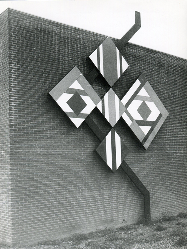 Op dit bedrijventerrein zat van 1970 tot 1997 brandweerpost ‘Laagjes’. De Rotterdamse brandweer was aanvankelijk onderdeel van de Roteb. Bij de bouw van het pand kreeg de Rotterdamse kunstenaar Johan van Reede de opdracht om een kunstwerk te maken in de percentageregeling. Deze regeling hield in dat er bij de bouw van overheidsgebouwen een percentage (1 a 1,5%) van de bouwsom besteed werd aan beeldende kunst. Van Reede maakte dit werk aan de gevel van geschilderd plaatstaal. Een zwarte stalen hoeklijn is de drager van vijf vierkanten in verschillend formaat. De vierkanten zijn beschilderd met lijnen en vlakken in de kleuren rood, blauw, wit, grijs en zwart. In 1997 werd de brandweerkazerne wegens bezuinigingen gesloten, maar het kleurrijke gevelwerk hangt er vijftig jaar later nog steeds. De locatie wordt gebruikt door de reinigingsdienst van Gemeente Rotterdam.