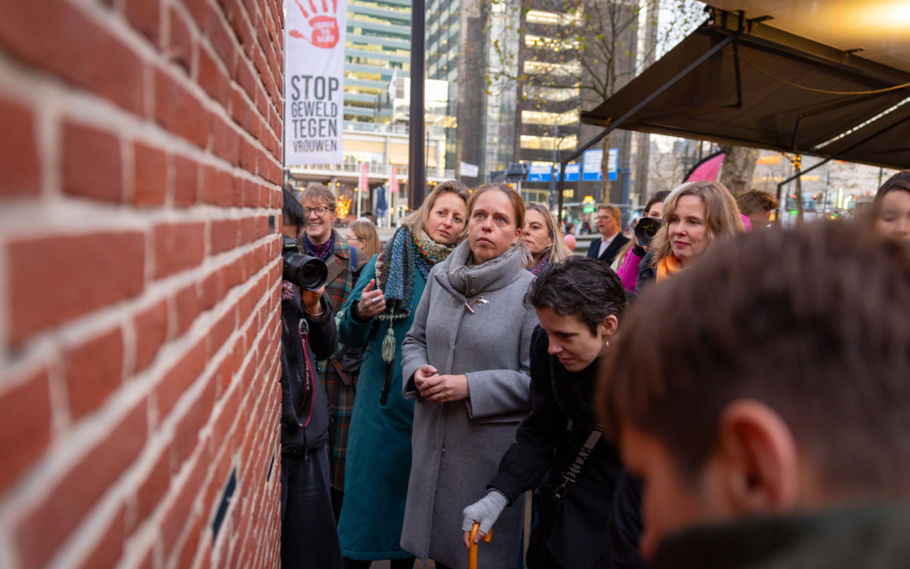 Het kunstwerk A Minute of Shelter van Narges Mohammadi wordt op dinsdag 25 november, Orange the World Day, onthuld op de Coolsingel. Het beeld vraagt aandacht voor alle vrouwen en meisjes die te maken hebben (gehad) met geweld. Partnergeweld en huiselijk geweld is een groot probleem in Nederland; Rotterdam is koploper in het aantal meldingen.