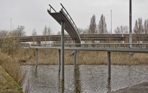 Verstopt onder de snelweg ligt een beeldenparkje voor verweesde sculpturen die door ontwikkelingen in de stad ontheemd zijn geraakt en nieuw onderdak nodig hadden. Een aantal dateert uit het wederopbouwtijdperk, net als deze fly-over. Met de vijftien sokkels vormen ze een brutalistisch uitziend museum van afgedankte vooruitgang, dat in geval van nood als waterbassin dient.