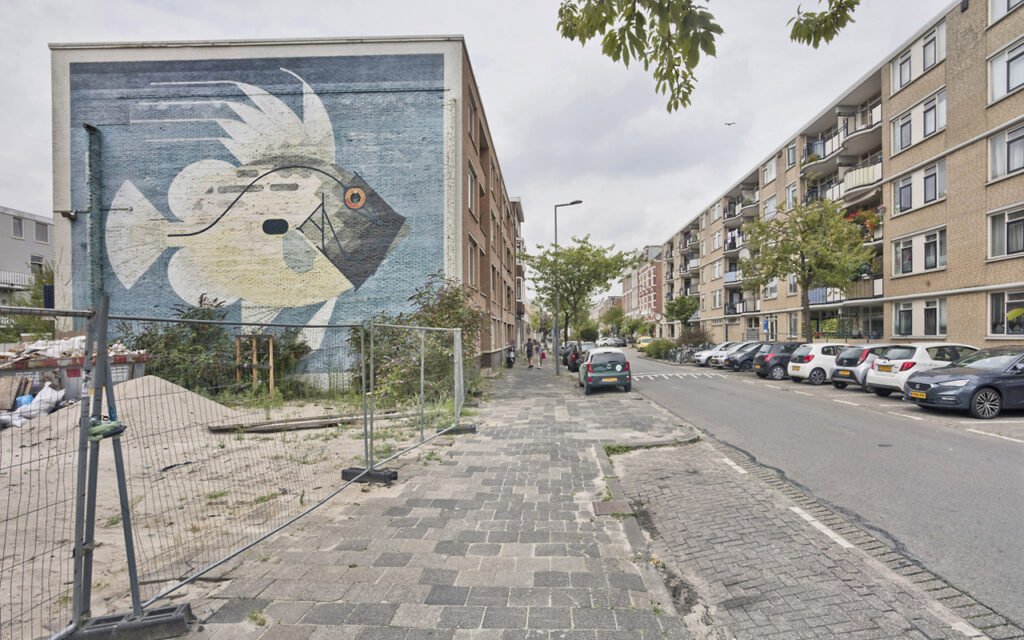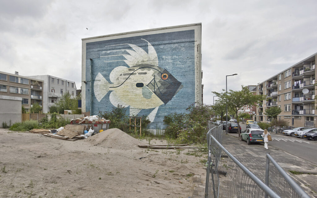 Voor het event Sober Walls van het kunstenaarscollectief Sober Collective werden drie grote muurschilderingen gerealiseerd in Rotterdam Noord. Eén op de Vletstraat, één op de Schoterbosstraat en deze op de Erasmusstraat. Dit werk kreeg de titel Zeus faber, de Latijnse naam voor zonnevis, die hier is afbeeld. De muurschildering is gemaakt door Amok Island. Het werk werd op 16 juli 2017 opgeleverd. Havensteder is de eigenaar van het pand en gaf toestemming voor de schildering. CBK Rotterdam droeg bij aan de totstandkoming van Sober Walls middels een financiële ondersteuning.